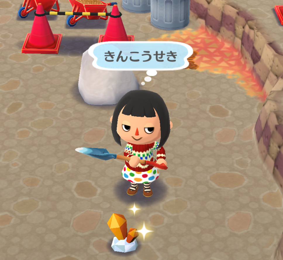 ハニワさんにスコップをもらって、回りにある岩をコンコンします。昔のどう森でお金の出る岩を探して歩いたのを思い出しますね。