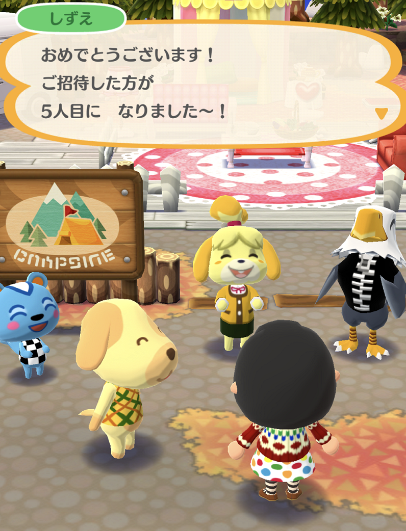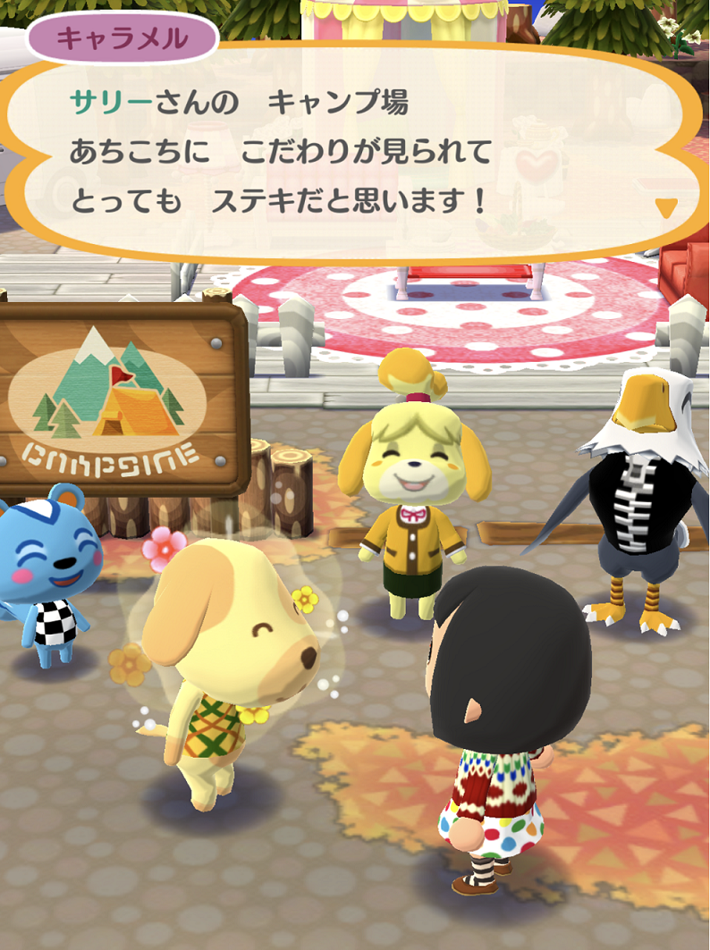最初は仲良しイベントが出るたびにはしゃいでいたサリーですが、一週間ほど経ってどう森キャンプに慣れてきたました。それと、レベルアップのたびにどうぶつさんが増えるので、しょっちゅうになり、場合によっては「ええーまたやるの」って思う時もあるようになりました。