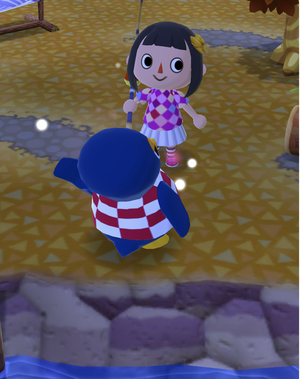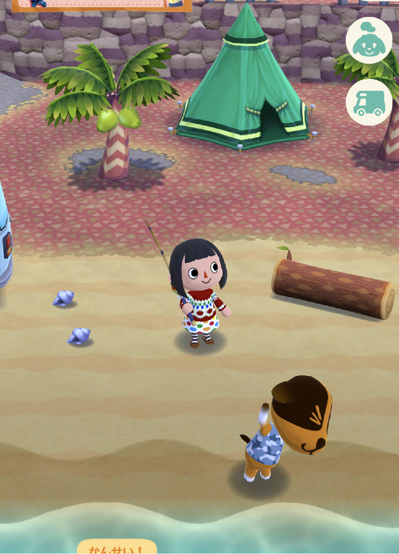 その後しずえさんに自己紹介して果物拾ったりあちこちの島へ行ったりというチュートリアルをしました。キャンプ場を真ん中にして回りに魚の島、お店の島、などが配置されていて、その移動もクリックで飛べるので、時間もかからずあーらくちん。