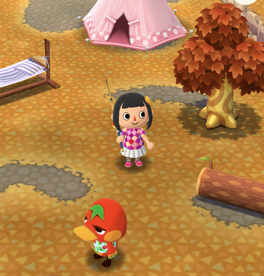 お魚を釣っておくかな、とナミナミ川にやってきました。すると、リコピン色のアヒルがいました。かわいい。